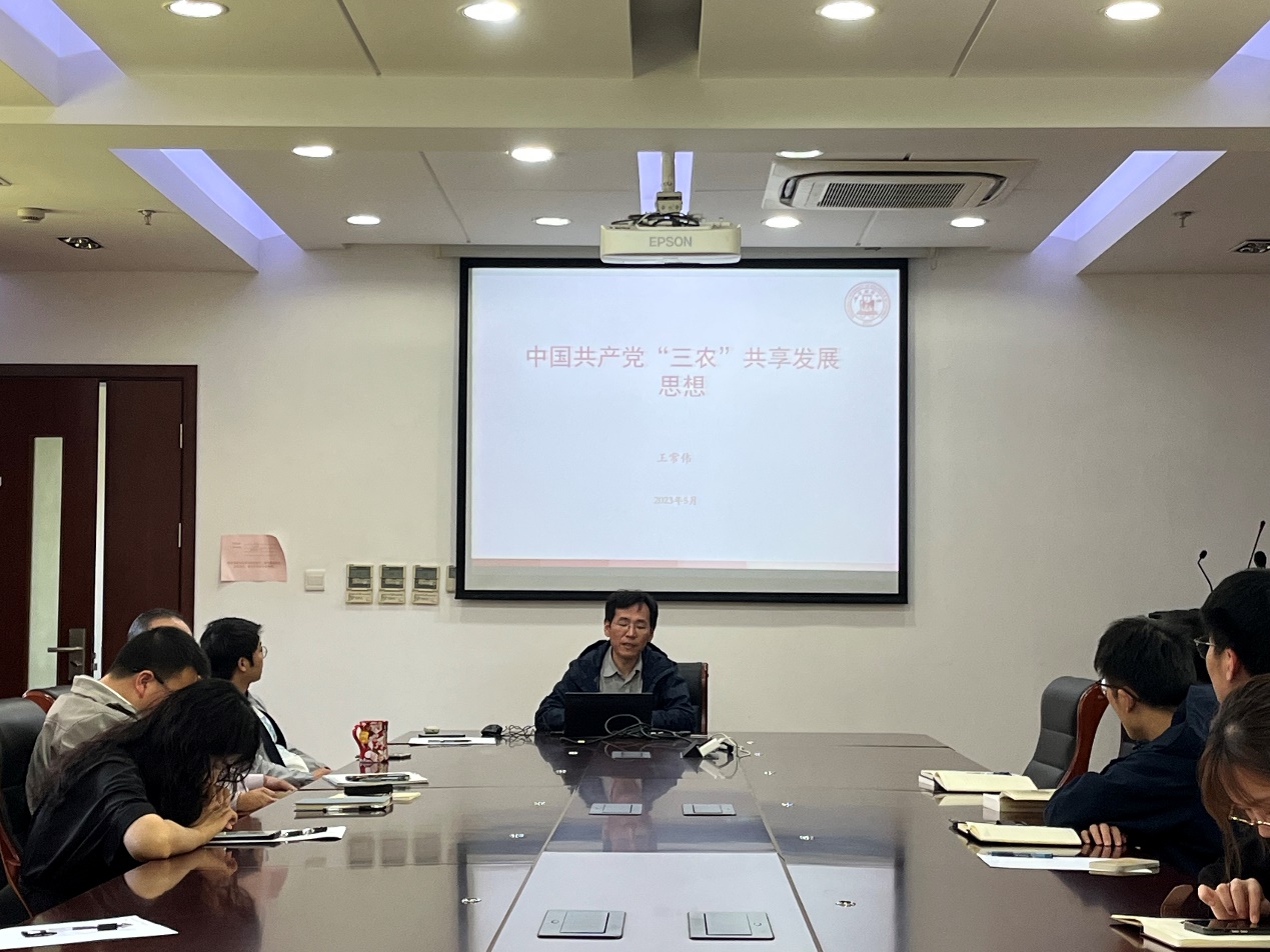 最后,王常伟同志以“中国共产党‘三农’共享发展理念”为主题,为全体师生党员带来了精彩的分享。首先,王常伟同志阐述了中国共产党共享发展理念的必然性:推进三农的共享发展是由马克思主义政党属性所决定;让广大农民共享发展成果是中国共产党的建党初衷;推进“三农”的共享发展是中国特色社会主义的本质要求。接着,他说到,纵观中国共产党“三农”实践,共享理念贯穿于全过程,诠释了全民共享、全面共享、共建共享与渐进共享。中国共产党坚持将“三农”问题作为全党工作的重中之重,必将通过不断打破城乡二元结构制度,不断释放农村发展潜力。