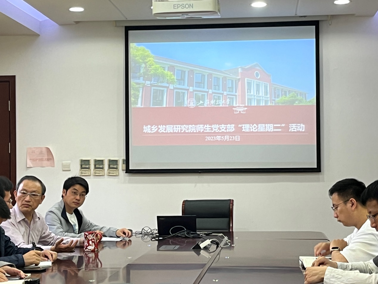 为深入开展学习贯彻习近平新时代中国特色社会主义思想主题教育,5月23日中午,财经研究所城乡发展研究院师生党支部开展了“理论星期二”主题党日活动。此次主题党日活动由党支部书记吴方卫、统战委员王常伟和纪检委员盖庆恩领学。